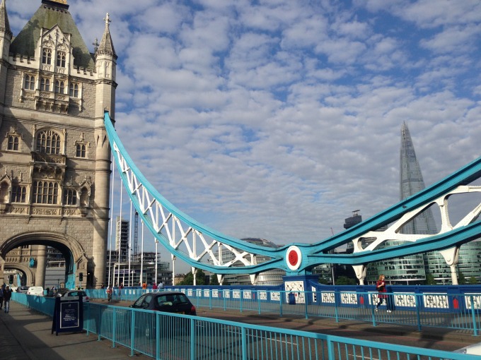 City view from the bridge, including – on the right – ze toweur of London, ze oldest prizon in ze weurld (if you know what movie this is from, I love you):