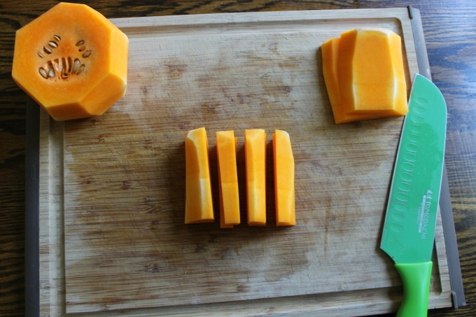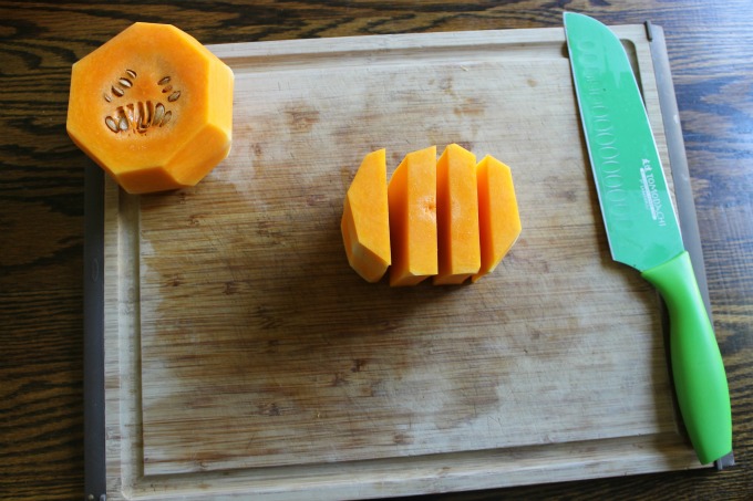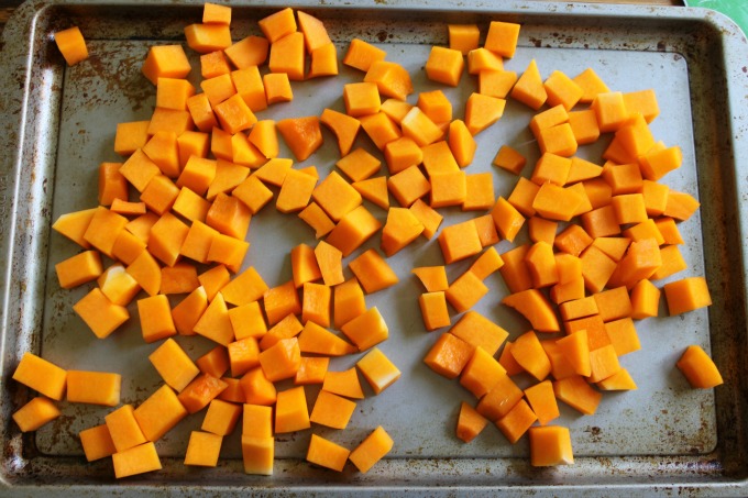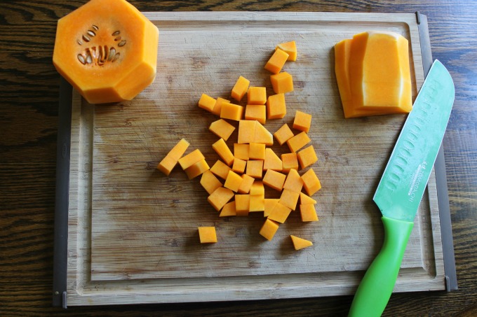 - Break down the butternut squash and dice into ½-1″ pieces (refer to this post for instructions).