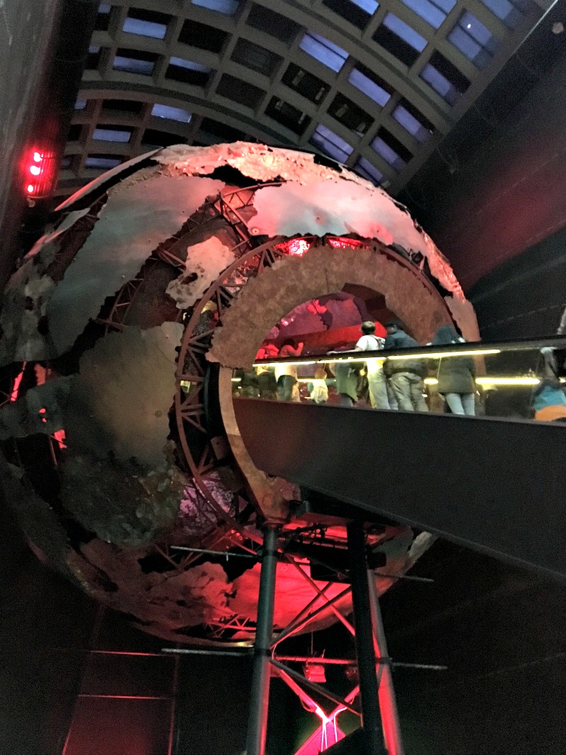 I had checked our stroller, umbrella, and coats at the coat check when we arrived at the museum, and it was the BEST IDEA I’VE EVER HAD. Well really, it wasn’t my initial idea. We just happened to come in the entrance that had this escalator going straight up into a giant red “ball ball!” (<- that’s Luca talking), and there was NO WAY he wasn’t going to ride it!
