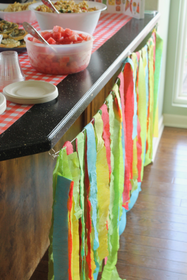 This streamer banner took FOREVER to make, but in total, it cost $4, so that’s still a win if you ask me. Bonus: Sawyer ripped it down after the party and crumpled it up for many minutes. Let’s call that sensory play. 😉
