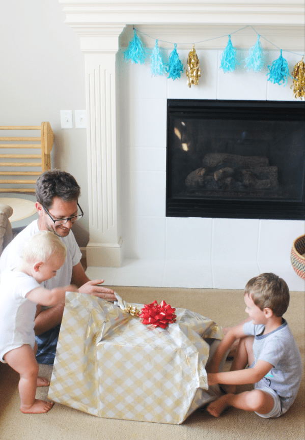 Ben turned 35 last weekend (or as I like to remind him, he’s halfway to 70). We didn’t have a big party, but we had a lot of fun celebrating at home with the boys. They were happy to help him open presents. 😉