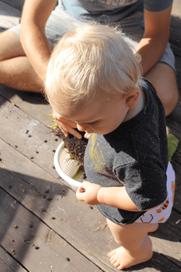 Our sunflowers reached the point last week when it was time to harvest the seeds! We had three plants which each got to around 10 feet tall, which I still think is INSANE since they started from one tiny seed just a few months ago. Nature is amazing. And these are the best sunflower seeds I’ve ever eaten!