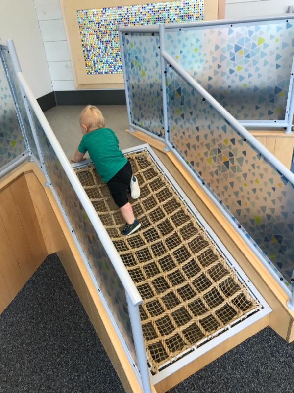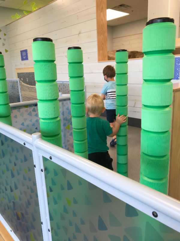 They recently opened a new room that’s only open to kids three and under. I love it for two primary reasons: 1. Sawyer has a BLAST there because everything is sized for him (and Luca likes it too), and 2. There’s a super nice attendant who stands sentry at the entrance, so I don’t have to worry about taking my eyes off one of the kids for a second or two.