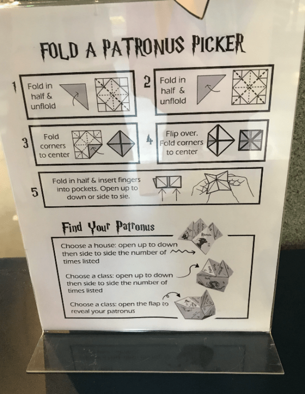 One very humbling activity was folding Patronus Pickers, which proved to me once again that Ben was a much cooler middle schooler than I ever was. I definitely remember other kids making these when we were like 11, and I definitely remember never being able to figure out how to do it. Here we are, 23 years later, and I still couldn’t figure it out. For Ben, however, it was like riding a bike. I mean, you could tell the man had had plenty of practice. He must have been such a cool tween.