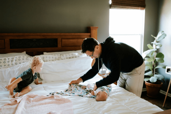 Ben always sticks his tongue out a little bit (a mannerism Luca inherited) when he’s concentrating hard. Like while doing chemistry or building a fence…or swaddling a baby.