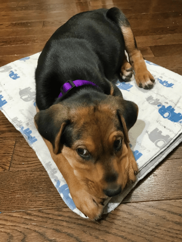 I saw that photo on the Wayside Waifs site on Sunday night. They’re not open on Mondays. So I spent the next 36 hours hemming and hawing. We don’t need a puppy. BUT! German Shepherds and Labs are my very favorite dog breeds. What are the odds we would ever find this mix of breeds at a shelter again? (We’re not “buy from a breeder” kind of people.) And as a puppy? And a girl? (I really wanted a girl this time.) And she was soooo cuuuute. But we don’t need a puppy.
